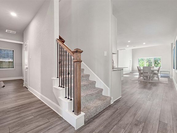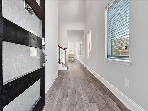 Discover this charming two-story, four-bedroom Shea home in the master-planned community of Vivace at Harmony. The kitchen boasts white cabinetry, a large island with granite countertops, a walk-in pantry, gas cooktop, built-in air fryer, and gas oven. The open-concept living and dining area features high ceilings, recessed lighting, luxury vinyl plank flooring, a wall of windows, and a private office space. Upstairs, you’ll find three additional bedrooms plus a spacious game room. Step outside to the covered patio overlooking a private backyard that backs up to serene wooded greenspace. This energy-efficient home is Energy Star certified, with Energy Star appliances and spray foam insulation. Located in Conroe ISD, Vivace at Harmony offers community amenities such as multiple pools, a splash pad, parks, a fitness center, and scenic trails. Enjoy easy access to Interstate 45, Hardy Toll Road, and the Grand Parkway, providing convenient connections to U.S. 59 north and U.S. 290.