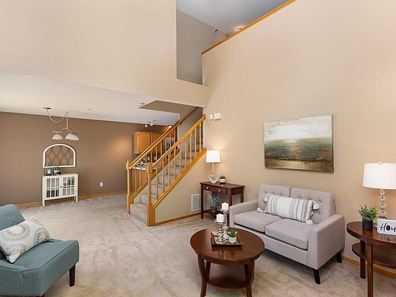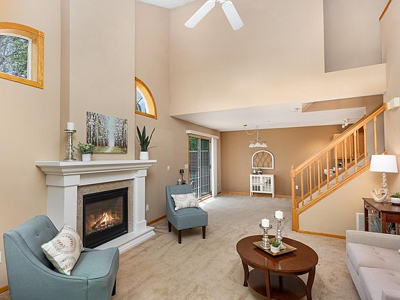 Inside, the home is filled with natural light thanks to large windows and an open layout. The spacious living room features two-story vaulted ceilings and a gas fireplace, creating a warm, inviting space with nature views. The kitchen offers abundant cabinetry, counter space, and a convenient breakfast bar. Upstairs, you’ll find a generous open loft area and two large bedrooms, each with walk-in closets. The bathroom features a ceramic tile floor, and the entire home has been impeccably cared for. Whether you're enjoying quiet mornings with a breeze through the windows or cozy evenings by the fireplace, this home blends comfort, style, and location. Walk to parks and trails, 5 min drive to Ridgedale, and a quick 20 min commute to downtown.