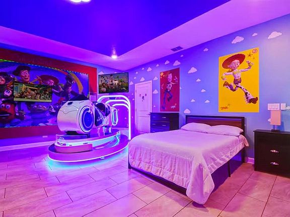 Enjoy stunning pond and conservation views with no rear neighbors in this spectacular Santiago model built in 2019, featuring a unique Virtual Reality machine for an unmatched entertainment experience. This 9-bedroom home is exceptionally well maintained and comes fully furnished, designed for both comfort and fun, offering: A private movie theater, Game room, Multiple beautifully themed bedrooms that guests of all ages will love. Located in the highly desirable Storey Lake Resort, just minutes from Disney and Orlando’s top attractions, this property combines luxury living with strong short-term rental income potential. Don’t miss the chance to own one of the most unique and well-kept homes in Storey Lake with rare views and premium upgrades!