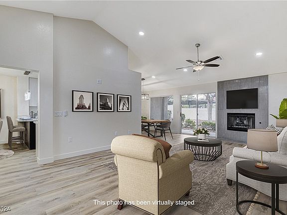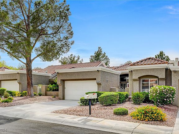 HURRY NOW IS THE TIME TO SEE THIS HOME! Amazing remodeled single story home in Sun City Summerlin! This 2 bedroom home is modern and move in ready. The front private courtyard entry makes for a peaceful retreat. Home has new paint, and upgraded luxury plank throughout and the vaulted ceilings offer for a spacious living. The great room features a modern gas fireplace, and ceiling fan. Dining area is adjacent to kitchen, and overlooks the green backyard. The kitchen has tall upper cabinets, extra large panty, breakfast bar, stainless steel appliances, and beautiful pendant lighting. Large primary bedroom with vaulted ceilings, bay window, with two large closets. The en suite bathroom has large shower, separate water closet and vanity. Back covered patio provides outdoor living at little to no maintenence. Sun City Summerlin offers social amenities that fits all needs, and has pools, walking, golf courses galore. Must see today!