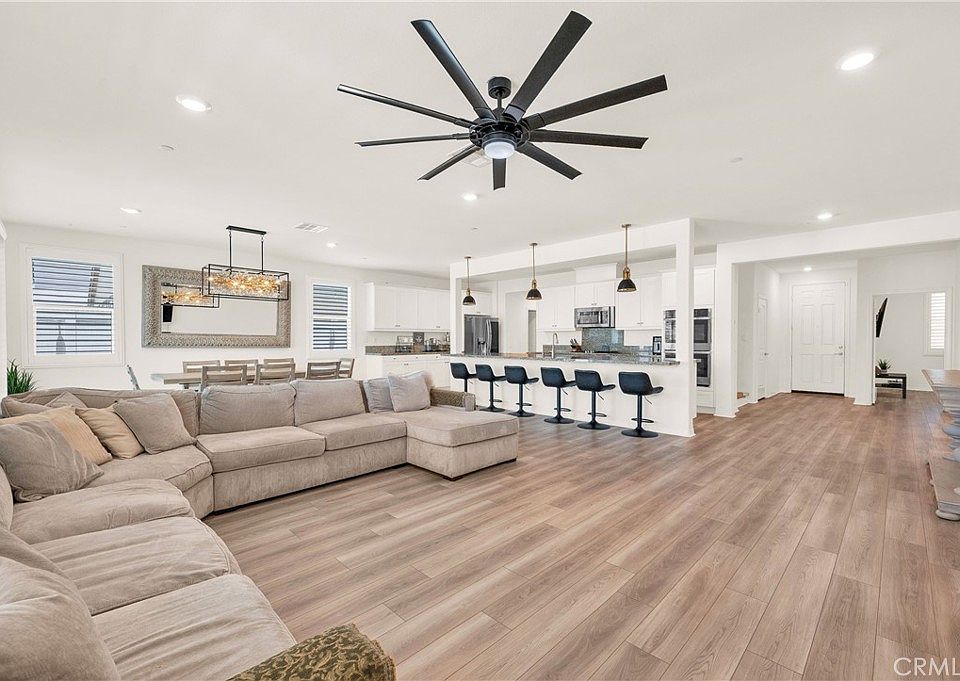Newly built in 2022 with NO HOA, this stunning 6-bed, 5-bath home offers 4,121 sq ft of upgraded living space and Next Gen/ADU-style downstairs suite—perfect for multigenerational living, rental income, or guests. The downstairs unit includes 2 bedrooms, a private entrance, its own driveway and garage access, a kitchenette, living area, and separate laundry room. Upstairs features 5 bedrooms and 3 full bathrooms, including a spacious primary suite with mountain and city views and a junior suite with a private bath. A large upstairs loft offers flexibility as a gym, media room, or optional 7th bedroom. Additional highlights: two laundry rooms (upstairs and downstairs), open-concept kitchen, $80K in upgrades including modern flooring, extended concrete patio, and vinyl patio cover. Dual A/C systems. Prime location near Freeway 60, a golf course, and walking distance to a park with playground. A rare find combining space, privacy, and income potential under $1M.