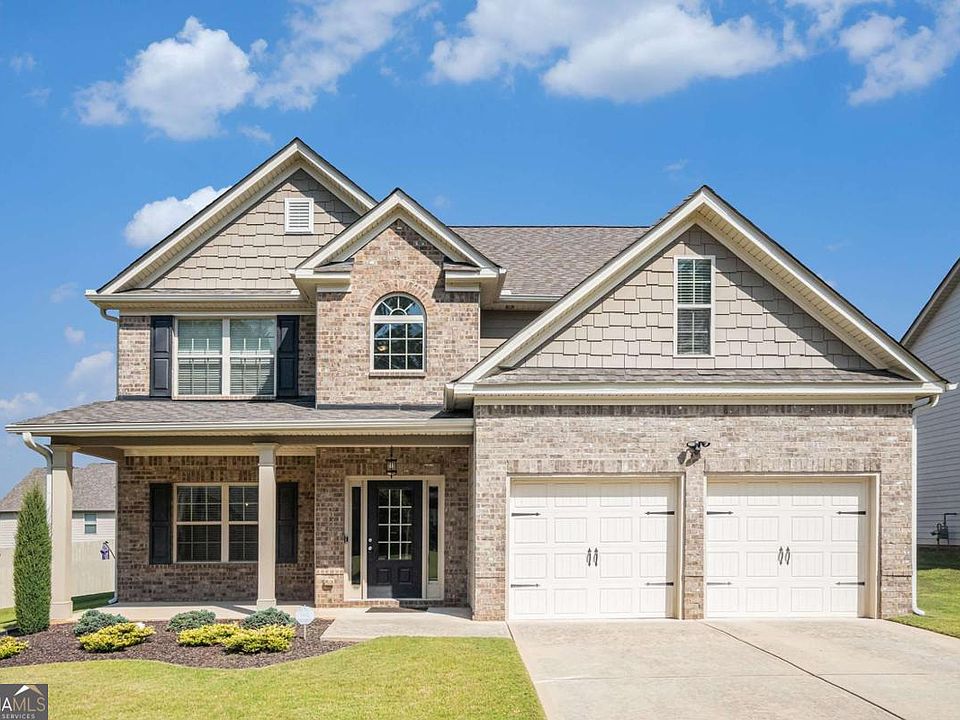 Located in the desirable Harvest Mill community in Conyers, GA, this spacious 4-bedroom, 2.5-bathroom home offers comfort, style, and access to great community amenities, including a neighborhood pool. The main level features a formal dining room and an open-concept living room that flows seamlessly into the kitchen, complete with a center island and breakfast nook. A cozy fireplace adds warmth and charm to the living area. Step outside to a backyard patio, ideal for relaxing or entertaining. Upstairs, you'll find all four bedrooms. The primary suite features elegant tray ceilings, a walk-in closet, and an ensuite bath with dual sinks, a soaking tub, and a separate shower. The secondary bedrooms are generously sized and share a full bathroom with a tub/shower combo. Don't miss this opportunity to own a well-appointed home in a sidewalk-lined community with easy access to shopping, dining, and more. Discounted rate options and no lender fee future refinancing may be available for qualified buyers of this home.