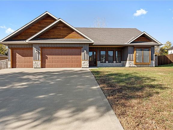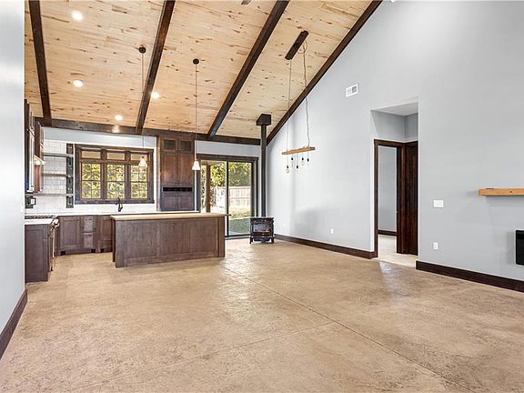 Welcome to this stunning single-level home, built in 2019, offering modern comfort and style in a prime Eudora location. Step inside to find beautiful vaulted ceilings that create a bright and open atmosphere, complemented by gorgeous stamped concrete flooring throughout the main living areas.