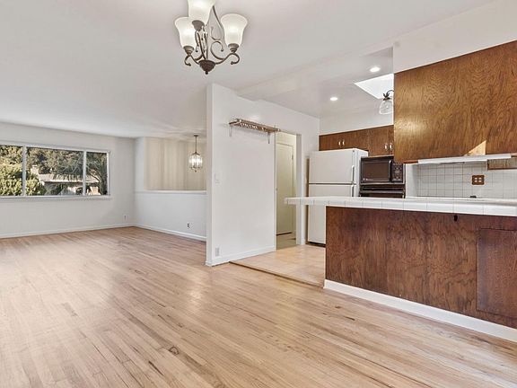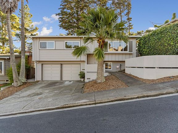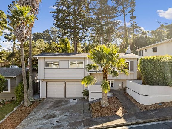 Located in the desirable Rollingwood neighborhood, tucked at the top of the hill overlooking the bay. Three bedroom, two bathroom single family home with an ample amount of garage space that has the potential for extra living space downstairs. Double paned windows and an insulated roof add to energy efficiency. A cozy gas fireplace provides heat in the living area. Natural sunlight throughout, refinished hardwood floors and new paint. The multi-level backyard is in a park-like setting where you can sit on the deck or beneath the trees while enjoying the view. Upper and lower patio with a hot-tub is ideal to host the perfect gatherings with friends and family. SF bay views can be enjoyed from the front and back. Located near parks, schools, transportation, shopping and highway 280.