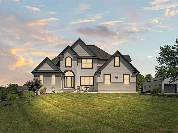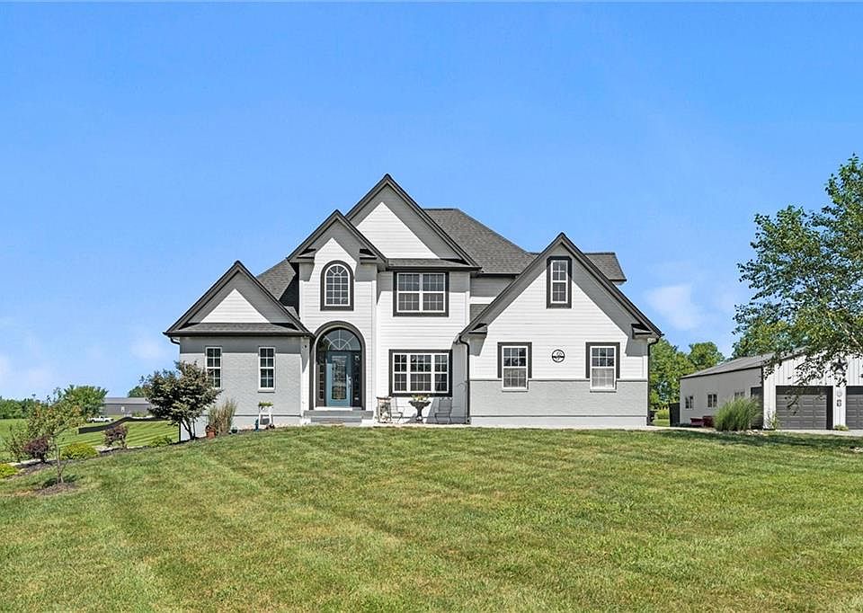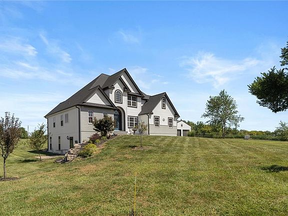 Outdoor living is equally impressive with a large deck, above-ground pool and rock-and-stone landscaping enhancing the home’s curb appeal. A detached outbuilding with 2 garage bays complements the 2-car side-entry attached garage, offering plenty of parking and storage. The 5 acres are beautifully maintained with lush green grass and wide-open space for relaxation or recreation.