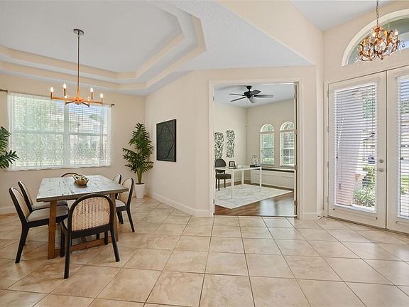 One or more photo(s) has been virtually staged. Welcome to Quail Woods, a gated Wesley Chapel community where elegance meets everyday comfort. This 4 bedroom, 3 bath home with a 3 car garage offers 2,657 sq ft of thoughtfully designed living space. Step through the covered entry into a foyer leading to formal dining and dedicated office space with newer flooring (2017). The heart of the home is a gourmet kitchen featuring rich wood cabinetry (2018), granite countertops, tile backsplash (2018), stainless steel appliances, large island, and an extended breakfast bar, perfect for entertaining. The kitchen opens to a spacious family room with triple sliders that seamlessly connect to the extended covered lanai (2018) for true Florida indoor, outdoor living. The owner’s suite boasts newer flooring (2017), dual walk-in closets and a spa like bath with soaking tub, oversized walk in shower, dual vanities, and elegant tile finishes. Secondary bedrooms are split for privacy, including one with an pool bath. A generous laundry room with tub and storage adds convenience. Water heater 2025. Built in 2015, the home is both energy efficient and modern. Set on nearly 1/3 acre, the property balances space and privacy. Low-fee Quail Woods offers nature trails, playground, and BBQ areas, not to mention TV and internet included, all just minutes from top schools, shopping, dining, and I-75. This move in ready gem is the perfect blend of style, function, and location.