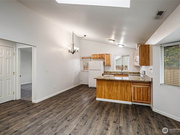 Come Home for the Holidays! Adorable Rambler with open floor plan, living room dining and kitchen with laminate flooring with vaulted ceiling for that big open feel! Newer cabinets and appliances, granite countertops with an eating bar, out to the back patio area and fenced backyard for privacy. This home features 3 bedrooms and 1 bath with laundry area, new carpet, 2 car attached garage and driveway parking. Close to shopping, medical centers and hospital, restaurants and I-5 for easy commute.