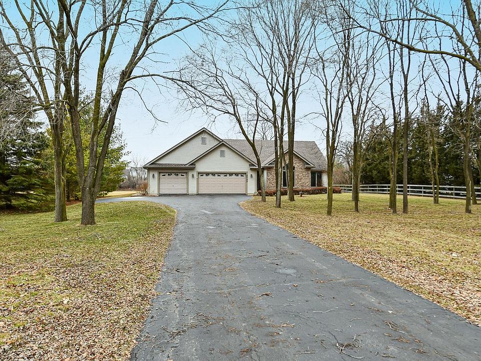 Custom Built Ranch on 1.36 acre lot! First time on the market, this nicely maintained home offers a great flr plan enhanced by vaulted ceilings, skylights & lg windows! The Living Room includes a Gas FP w/floor to ceiling Brick surround & French doors that lead to Den. Eat-In Kitchen w/updated flooring & appliances feature patio doors that lead out to screened in porch & backyard patio! Master Bedroom w/Ensuite & lg WIC, 2 addt'l Bedrooms & Laundry complete the main level. Expansive Basement w/lg workshop area has tons of finishing potential and is stubbed for a bath! Updates within the past several years include roof, furnace, water heater & water softener. Home is set back from road on a spacious lot w/3.5 car garage! Easy access to Interstate and is within minutes to area amenities!