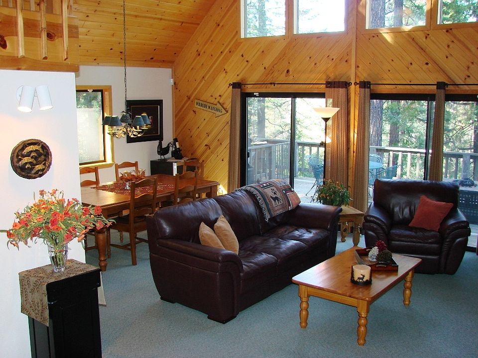 This Grand Mountain Chalet is what everyone is looking for. Located in Blue Lake Springs which backs to private forest land for the ultimate privacy. With vaulted pine ceiling, large picturesque windows, gas log fireplace with floor to ceiling rock wall surround, 3 bedrooms, 2.5 baths, open loft, and large bonus room. The bonus room has enough room for a pool table, more game tables and extra sleeping. It also has a private half bath and laundry room. Two over sized decks with the forest views adds to your out door entertainment. The separate 2 car garage has extra storage with a gentle down driveway. There are two more extra storage units beneath the house for all your toys! You will appreciate the pride of ownership that this home offers. ARNOLD is the "Heart" of the Sierras and this development is close to stores, restaurants and shopping. We also offer wine tasting, golf, boating and a ski resort. There is no shortage of activities for all ages.