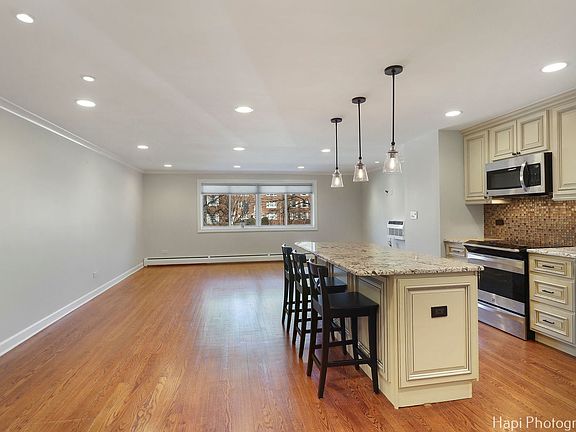 Bright, Spacious & Updated Condo in a Prime Central Location! Step into this beautifully updated 2-bedroom, 2-bathroom condo, where modern convenience meets timeless style. Nestled in a sought-after brick elevator building, this light-filled home offers a warm and inviting atmosphere, complete with one heated garage parking space for year-round comfort. From the moment you enter, you're welcomed by an open-concept kitchen that seamlessly blends style and functionality. Designed for both everyday living and entertaining, it features stainless steel appliances, gleaming granite countertops, and a generous island with seating and elegant pendant lighting. Custom 36-inch upper cabinetry and a sleek glass backsplash provide both beauty and ample storage, while a refrigerator with in-door ice and water adds an extra touch of convenience. The living and dining area offers flexibility to create your ideal space, whether it's cozy evenings in or hosting family and friends. Large windows flood the space with natural light, beautifully complementing the rich hardwood floors that flow throughout the home. Retreat to the primary suite featuring a private en-suite bathroom with granite countertop and a spacious walk-in closet with built-in organizers. The second bedroom is equally inviting, offering comfort and versatility for guests or a home office. An updated hall bathroom, recessed lighting, and ceiling fans in both bedrooms enhance the home's modern appeal. Freshly painted in warm, neutral Benjamin Moore tones, this condo is move-in ready and waiting for you. Additional highlights include two storage spaces. Water and heat are included in the assessments, adding to the home's exceptional value. Perfectly positioned just moments from shops, dining, and a nearby park, this condo offers the ideal blend of style, comfort, and accessibility. Don't miss this incredible opportunity to own in the heart of Central Street-schedule your showing today!