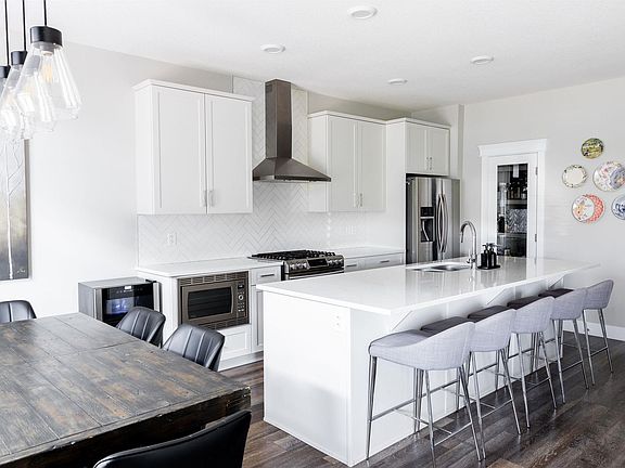 Dark accent wallsModern light fixturesBeautiful kitchenGas stoveOpen-concept main floorTons of storageBbq gas line