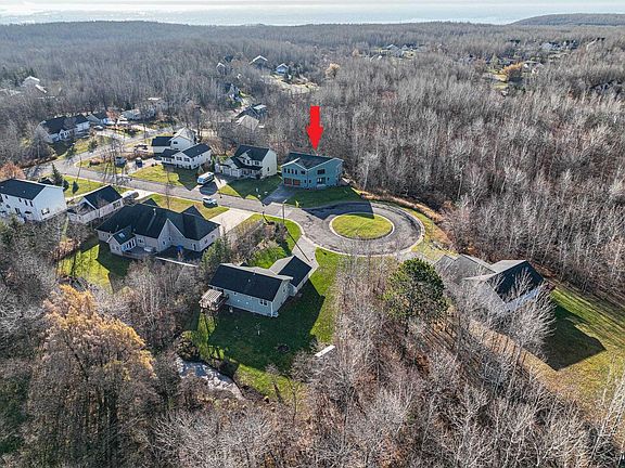 Enjoy your evenings grilling on the deck overlooking the little stream in your back yard surrounded by hundreds of acres of state land. Located on a cul-de-sac for minimum traffic and great for walking pets and biking. This contemporary home is like no other and features a full wall of windows to a wooded backyard. The natural light in this home is one of the seller's favorite things. A custom stone ceiling height fireplace adjoins the dining room and living area. Open layout kitchen is great for entertaining as well as the walkout basement to the patio/firepit area. The large primary bedroom features a walk-in closet, walk-in shower, separate tub and a double sinks vanity. Two additional bedrooms are also featured on the upper level. The lower level features an entertainment room and two additional bedrooms also used as workout rooms and offices. Central air conditioning and dual-fuel in-floor heat also make this home unique and affordable. Make this home yours before the holidays and enjoy your gatherings in comfort.
