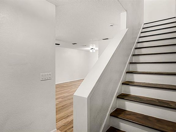 Modern upgradesBeautifully renovated homeGuest bathroomQuartz countertopsLush green treesCustom floating shelvesCompletely updated townhouse