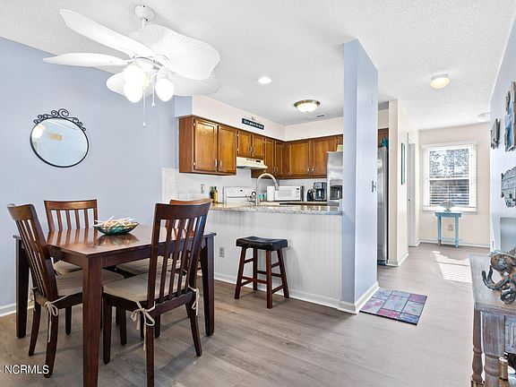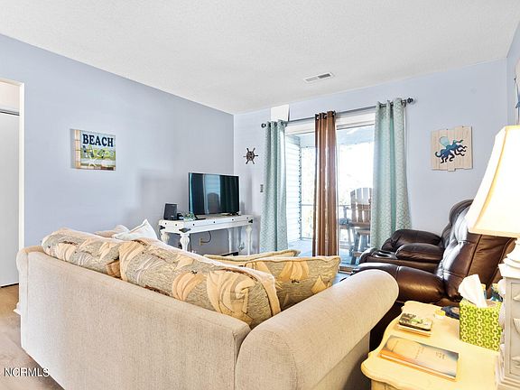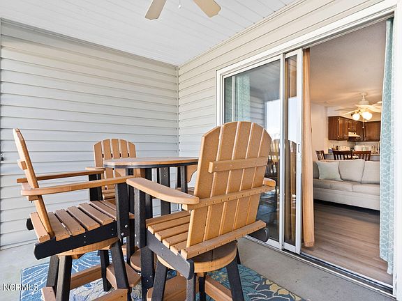 Don't miss the opportunity on this mostly furnished top floor condo. However, sellers will remove furnishings, if you so desire. (The TV and TV Stand in the living room, along with the screened porch furniture- do NOT convey). The living room is thoughtfully furnished with comfortable seating, creating a cozy atmosphere for relaxation. The upgraded LVP flooring throughout adds a touch of warmth to the space, while also being easy to maintain. The galley kitchen features granite countertops along with ample cabinetry and counter space. Both bedrooms are complete with a comfortable bed and good size closets for your belongings. You'll also enjoy 2 full baths in this unit. Step outside onto the screened porch- It's the perfect spot to enjoy a cup of coffee in the morning or unwind after a long day. This unit also includes a washer and dryer and refrigerator. Located in a desirable location- you'll have easy access to shopping, dining, medical and entertainment options. Just a short drive to the Coastal NC Beaches. Commuting is a breeze with convenient access to major highways and public transportation. Call today to set up your private showing!