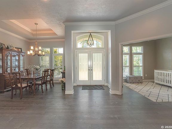 You would never know stepping inside that this modern transitional Tommy Waters built home is four years new. Meticulously maintained inside and out, this home lives large with a floor plan offering flexibility for your lifestyle. Beautiful wood floors connect the foyer with the living areas and the bedroom hallways. The upscale kitchen will not disappoint: 42" white shaker cabinets, a gas oven and a center island topped with granite. This 3 way split plan has the master and sep study/nursery off the great room; while 2 guest rooms on the opposite side sharing a Jack-N-Jill bath. The 4th bedroom with direct bathroom access could be large bonus/flex space you're wanting. The great room sliding glass doors pocket, opening the interior of the home onto the paver lanai and screen enclosed, salt generated pool. There is a complete summer kitchen package: a grill, hood, granite counters, cabinetry storage, and a bev. cooler. The rear yard is fully fenced. High end, industry leading energy efficiency items allow for affordable electric: R38 Batt ceiling insulation, Low-E insulated windows, ZONED Carrier HVAC, and tankless WH. Zoned for A-Rated schools, store your golf cart in the 3CG and enjoy living in this great sought after community.