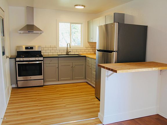 Enjoy feeling like you live in the country with the convenience of being in town. Located in a pleasant duplex, this one bedroom, one bath (with shower, no tub) unit features an L-shaped living space/kitchen. You won't want to miss the beautifully remodeled kitchen and bathroom, complete with new flooring, appliances, frosted barn-style bathroom door and vanity! The one car garage has laundry hookups as well as the shared wall between the two duplex units. The shared 2-acre property allows for room to roam and may satisfy a green thumb with the community garden. This is a long term month-to-month tenancy, with a security deposit required. One dog under 25 lbs and up to two cats will be considered and will increase the deposit by $200 each. Future tenants must have proof of Renter's Insurance before occupying the property. Water and Sewer are included! All other utilities are the responsibility of the tenant. The owner is not accepting cosigners at this time. Please drive by, but DO NOT DISTURB OCCUPANTS OR VENDORS. All properties are smoke and marijuana free. Our tenants enjoy an online portal to pay rent electronically and submit maintenance requests. PLEASE NOTE: Rental listings subject to change at any time. Agent believes all information contained herein to be correct but assumes no legal responsibility for the accuracy, any errors, or any omissions in this ad or any syndicated ads on third party websites.