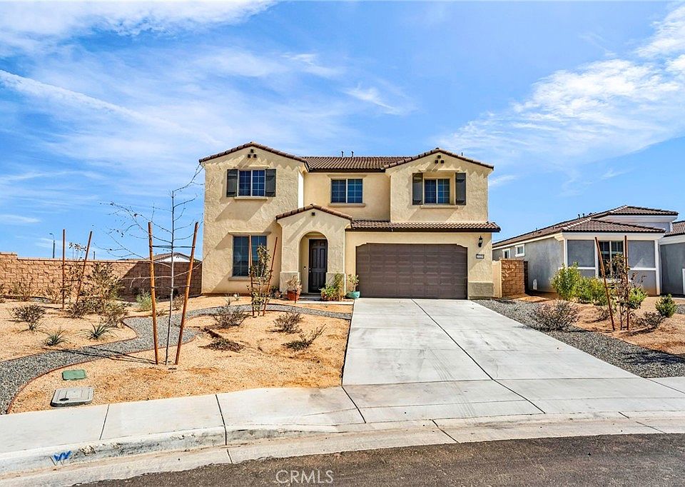 Welcome to the Visionary—the largest plan in Pathway's Cimarron Ridge community. This stylish 5-bed, 3-bath(2824 sqft) home with a spacious loft and a flexible room that works as an office, playroom, or potential 6th bedroom. A full bedroom and bath downstairs are perfect for guests or multigenerational living. Energy-smart paid-off solar and a home water softener included. The open-concept kitchen features an oversized island, white cabinets, quartz countertops, and stainless steel appliances (included), flowing into the great room. Picture windows frame rolling mountain views from the loft, the primary bed and bath. No rear neighbor for added privacy. Set on one of the neighborhoods largest lots(13,673 sqft), the backyard is entertainer-ready with room to add a pool. Additionally the backyard has drip-irrigated mini-orchard: oranges, lemons, pomegranates, pears, nectarines, peaches, plums (red & loquat/Chinese), figs (brown & green), guava, apple, avocado, grapes, persimmon, almond, walnut—plus strawberries, blueberries, cranberries, mulberries (white/red/black)—and premium rose bushes for year-round color. Plus a coup