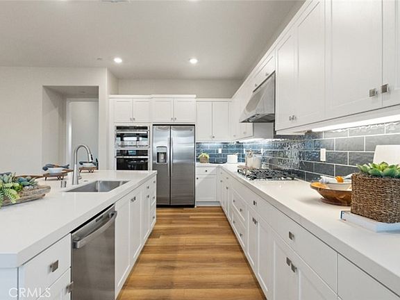 Referred to as "Element Plan 7" this single level condominium on the top/3rd floor of the building, has extremely high ceilings, Quartz kitchen counter tops, built in cabinets in kitchen & hallway, Samsung kitchen appliances, Navien tankless water heater, circulation pump, security system at building lobby, Ring security camera/doorbell and Schlage keyless entry at entry, Honeywell thermostat for programmable a/c and heating. Has a exposed deck, very large private storage locker (located in hallway) and detached 2-car extended (very long) tandem garage. Every square foot of flooring has been upgraded with luxury premium vinyl plank flooring in the kitchen, premium carpet throughout the dry areas and 12" x 24" ceramic tile in the bathrooms, totaling nearly $23,000 in upgraded wholesale pricing FOR FREE! Location is high above Santa Clarita valley, with access to community's 3 resort-style pools and spa, and just minutes from 5 freeway and formidable retail.