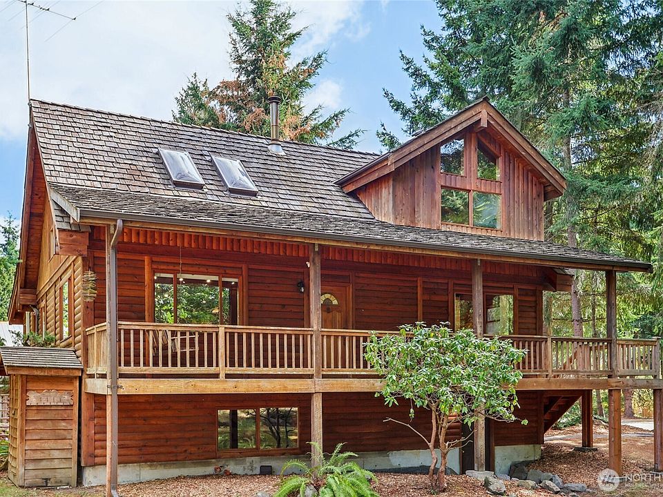 Fruit treesSeasonal streamModern livingPnw log-style homeWalk-out basementTwo bonus roomsGenerous deck