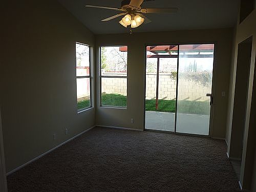Spacious living and adjoining dining rooms with beautiful laminate flooring; den with ceiling fan and fireplace; spacious kitchen with island, tile counters, breakfast eating area, lots of cabinet storage; master bedroom suite with ceiling fan and attached full bath; indoor laundry; 2 car garage; landscaped yards with covered rear patio; gardening included; close to Highland High School; convenient to shopping and freeway. $1,550 per month! Not Section 8 Approved