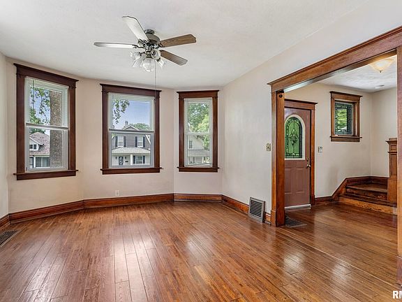 Welcome Home to Character, Comfort, & Community! Feel the timeless appeal of original HARDWOOD trim & flooring, high 9-foot ceilings, & STATELY COLUMNS that reflect the craftsmanship of a bygone era, all bathed in natural light from the REPLACEMENT WINDOWS for energy efficiency & comfort. Inside, enjoy spacious living & dining areas designed for hosting, relaxing, or raising a family. The large kitchen is a dream for the home chef: LOTS OF COUNTER/CABINET SPACE, STAINLESS APPLIANCES, plenty of room to cook, connect, & create memories. WS/DR stay, making your move-in seamless and budget-friendly. Outside, the NEWER ROOF (2019) & aluminum exterior add peace of mind. The inviting 3-SEASON SUNROOM offers extended living space, leading out to a lovely DECK (2013), perfect for entertaining or winding down. The FENCED backyard offers the perfect space for gardening, or letting the pets roam free. The detached 1-car garage adds convenience, while the unbeatable location in a friendly, established neighborhood just blocks from scenic VANDER VEER PARK, and GARFIELD ELEMENTARY, giving you quick access to schools, parks, shopping, & community events. Whether first-time buyer, young couple, savvy investor, or anyone, this home delivers unbeatable value at just $160,000—well below the area’s average price. Start building your future in a place that feels like home the moment you walk in. Schedule your showing today! (note: some pics virtually staged)