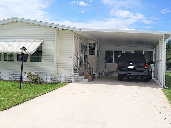 AVAILABLE FOR A QUICK SALE! SPACIOUS 2 BEDROOM 2 BATH FURNISHED MANUFACTURED HOME IN ST LUCIE FALLS. Low HOA fee, you own the land. 2 bedrooms, 2 bathrooms, kitchen with breakfast bar, living room, dining room, den, inside laundry. Master with walk in closet and ensuite including double sinks, separate bath and shower. 2nd bathroom with tub/shower. Screened patio and utility room, new Roof & Sky Lights 11/2019, new A/C 8/2020, new Sewer Plumbing & Toilets 6/2019 . HOA fee includes cable and internet, maximum 2 pets. Home is being sold as-is with right to inspect. Seller will not make any repairs, no warranties or guarantees. This active retirement community offers a clubhouse, pool, billiards, tennis, daily activities. Close to doctors, shopping, restaurants, I95