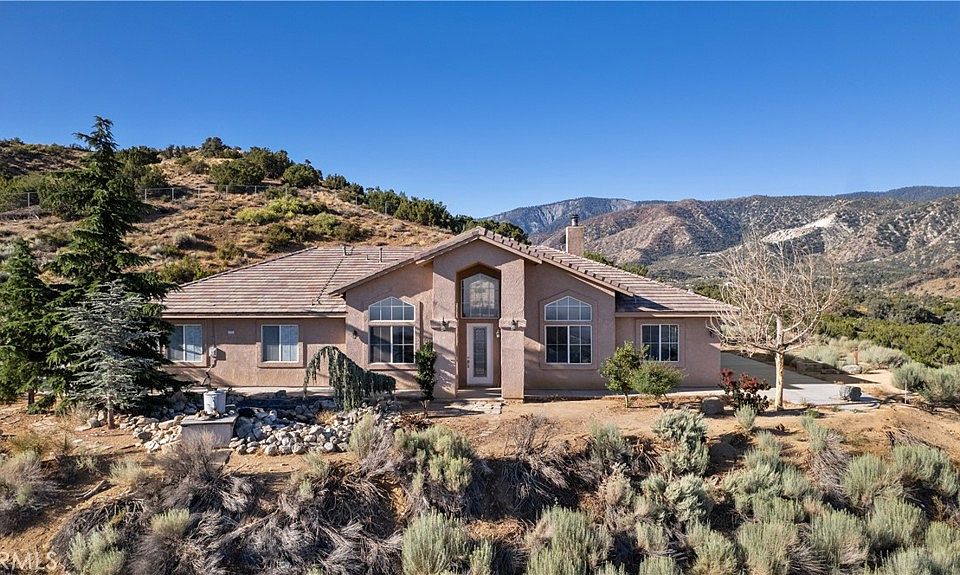 180 DEGREE PANORAMIC VIEWS!! SOLAR PAID FOR.... Spacious 3 bedroom, 3 bathroom home with split floor plan. Amazing large windows to enjoy the breathtaking views. Open concept kitchen, Corian counter tops, complete with wet bar. Wonderful fireplace with forced heat throughout the home. Vaulted ceilings including recessed lighting. Formal living and dining room perfect for entertaining. Master suite has dual vanity, jetted garden tub and large shower enclosure, walk in closets. 2nd & 3rd bedroom share a Jack and Jill bathroom includes shower/tub combo. Indoor laundry. Large covered patio, Koi Pond and Fire Pit outside to enjoy evening sunsets. 3 car, deep garage. Horse corrals with tack shed. Property situated on 3.92 acres. This property is Subject to Short Sale Approval.