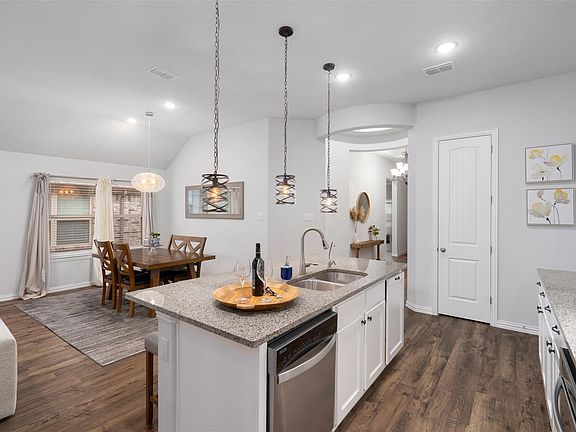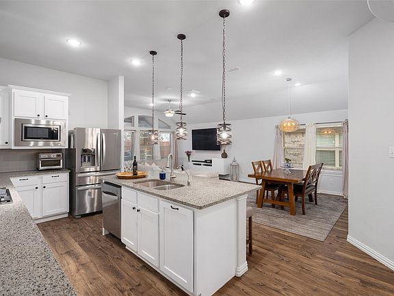 Welcome to this stunning 5-bedroom, 3-bathroom single-story home, ideally situated in the highly sought-after North Creek Estates community. Built in 2019, this modern residence offers 2,221 sq ft of bright, open-concept living. The interior impresses with beautiful wood flooring, vaulted ceilings, and abundant natural light. The gourmet kitchen is an entertainer's dream, featuring a large central island, gas cooktop, pantry, and ample cabinet space. It flows seamlessly into the spacious living area, perfect for family gatherings. Retreat to the private primary suite, which boasts a bay window, dual sinks, a relaxing garden tub, a separate shower, and a large walk-in closet. Four additional bedrooms provide exceptional flexibility for a growing family, home offices, or a guest room. One of the best features of this home is the backyard, which backs up to a mature tree line, offering enhanced privacy and a peaceful view. As a resident, you'll enjoy access to North Creek's resort-style amenities, including a community pool, clubhouse, fitness center, parks, playgrounds, and scenic walking trails. Located in the acclaimed Melissa ISD and just a short walk from North Creek Elementary. Enjoy convenient access to Hwy 75, placing you just minutes from the shopping, dining, and entertainment of McKinney. This home is a must-see!