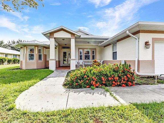 Stunning Deep Creek Residence on Private Cul-de-Sac and Move-In Ready – Exceptional Features & Prime Location Welcome to your dream home nestled on a tranquil private cul-de-sac in the reputable Deep Creek neighborhood! This beautifully appointed residence offers a harmonious blend of style, comfort, and modern conveniences in one of Charlotte County’s most sought-after deed-restricted communities. Step inside to discover an expansive open floor plan, enhanced throughout by elegant tile flooring and enriched with natural light from every angle. The chef’s delight kitchen is the heart of the home, featuring gleaming granite countertops, raised panel wood cabinetry, abundant storage including a spacious closet pantry, and a casual breakfast nook perfect for morning moments through evening meals. Stainless steel appliances, including a newer Bosch dishwasher and side-by-side refrigerator, elevate your culinary experience, while plantation shutters accent every window, providing both privacy and a classic aesthetic. Enjoy the Florida sunshine from three inviting porches: an enclosed lanai for year-round relaxation, an open-air porch at the front entry, and a second open porch overlooking a lush greenbelt and wooded backyard—ideal settings to unwind, entertain, or simply savor the peaceful surroundings. The versatile bonus room, framed by double French doors, offers flexibility to be a formal dining space, a cozy den, or an inspiring home office. Every detail has been thoughtfully considered to provide easy, gracious living. Situated just minutes from I-75, you’ll have seamless access to downtown Punta Gorda, Fort Myers, and Sarasota. Charlotte County’s abundant parks, including a delightful beach park on Charlotte Harbor, and the area’s pristine Gulf beaches—just a short 35-minute drive away—invite you to embrace the best of Southwest Florida living. Experience the perfect blend of luxury, location, and lifestyle—make it yours today!