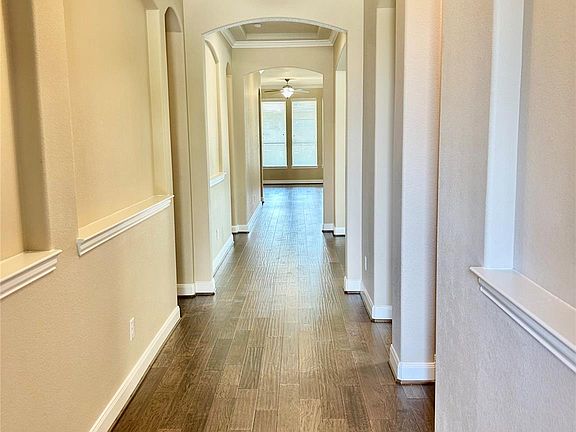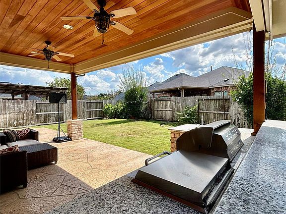 Stunning one-story Lennar home in Cross Creek Ranch! This 4-bedroom, 3-bath beauty with a 2-car garage offers both comfort and style. Step inside to an inviting entryway with rich hardwood floors, tray ceilings, crown molding, and elegant arched openings. A formal dining room, mud niche, and a light-filled family room with a fireplace and wall of windows create a warm and welcoming atmosphere. The chef's kitchen is a dream, featuring a massive granite island with breakfast bar, stainless steel appliances, and recessed lighting perfect for cooking and gathering. The spacious primary suite includes a luxurious en-suite bath with a relaxing garden tub. Entertain with ease on the expansive covered patio, complete with recessed lighting, dual ceiling fans, and a fully equipped outdoor kitchen ideal for weekend cookouts and backyard get-togethers. Don't miss your chance to tour this incredible home today!