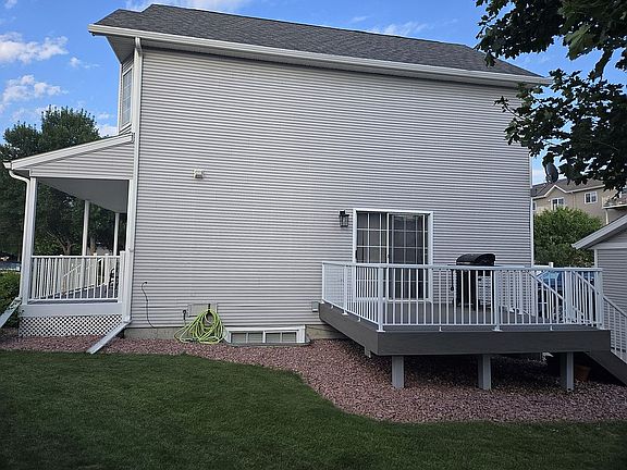 This home has maintenance free back steps and side deck great for grilling and entertaining, a front porch for sitting enjoying the day. The main floor has new vinyl flooring including the stairs to second story. This home has a finished basement with egress windows can be used for another bedroom or family room with full bathroom.