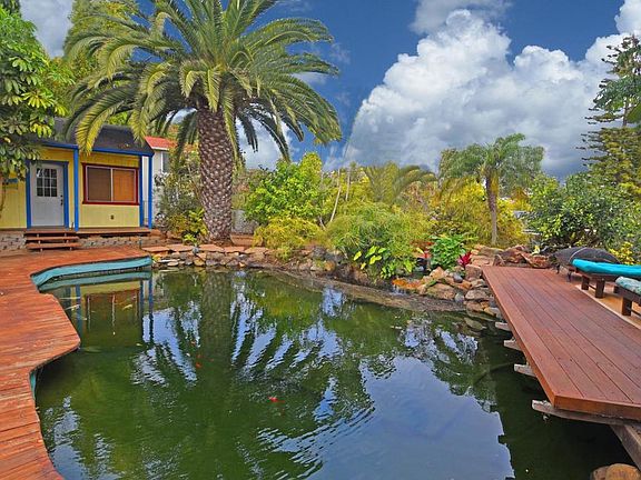 Cool single story cottage style home on a fully useable, private, estate sized (19,200sf) lot with views. Opportunity to either enjoy this special property as is or take advantage of development possibilities which may pay off now or in the future as a value-add benefit upon resale by adding an ADU or two which could provide either additional income or create more family options. Architect owned, light and bright, meticulously maintained. Original hardwood floors, refreshing atrium bar area. Exotic, tropical inspired fencing enhances the theme. Highly upgraded bathroom remodels. Tankless water heating, seller owned solar, drip irrigation and more. Second story addition would yield some ocean views. Plenty of room to expand this home if needed. Throw parties or enjoy gatherings overlooking the colorful, engaging, koi pond and lush, tree filled greenery. Work from home or on hobbies in the pond side, detached, office hut. Then slide into the covered spa, have a cocktail, and wind down. Develop additional on-site amenities to supplement the quality surroundings among the existing specimen & fruit producing trees and other impressive foliage on site. Property may also qualify for SB-9 (California Home Act), as allowed by the city which may include expanded development opportunities. Use your imagination in your own private world with this fully useable spacious parcel, located on a quiet street in this highly sought after location. Easy access to much this vibrant, exciting city and the coast has to offer. Also, See attached digital brochure for easy scrolling through the photos in hi res. Easy to see. FYI - NUMEROUS HIGH END SALES NEAR THIS LOCATION IN THE 4 MILL RANGE. SEE CMA IN PHOTOS .