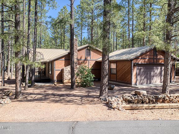 Escape to the cool mountains of Arizona and discover this charming home in the coveted Pinetop Lakes Country Club area. This delightful property offers the perfect blend of comfort, convenience, and natural beauty. Ready for immediate enjoyment, this home promises a tranquil retreat surrounded by towering pines and fresh mountain air. Nestled on a generous 1.5 lot (almost 1/2 acre), this home provides ample space and privacy. The expansive, flat, usable corner lot offers endless possibilities - from creating your dream garden to building a workshop or expanding the existing home. Imagine waking up to the invigorating fragrance of pine trees right outside your window and enjoying cozy evenings by the enchanting wood burning stone fireplace. In addition to the extra large primary bedroom and secondary bedroom, the den could also be converted into a 3rd bedroom, if desired. The freshly painted front and rear covered decks invite you to unwind and soak in the serene surroundings. Picture yourself sipping your morning coffee or hosting evening gatherings amidst the beauty of Pinetop Lakes. The decks provide the perfect vantage point to appreciate the natural splendor that surrounds you! The attached 2 Car Garage was professionally built in 2002 and the metal roof was installed in 2007. As a resident of this desirable area, you'll enjoy exclusive clubhouse privileges, including access to exercise, a sparkling pool, a relaxing spa, and well-maintained tennis courts. Stay active and social, all within a short distance from your front door. This Pinetop Lakes Country Club area home is a rare find, offering a combination of desirable features, a prime location, and access to fantastic amenities. Don't miss the opportunity to make this mountain retreat your own and start enjoying the Pinetop lifestyle today!