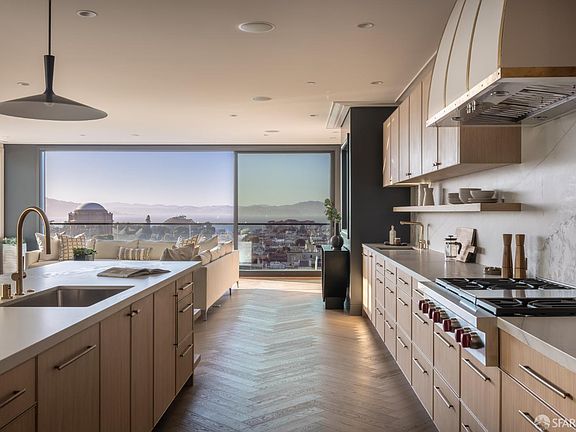 Newly completed by Nova Designs + Builds, this 9,600+ square foot residence crowns Cow Hollow with commanding views spanning the GG Bridge, Alcatraz, Russian Hill, Pac. Heights, and the Presidio. Nearly a decade in the making, this architectural achievement is as refined in function as it is bold in scale. Designed for both entertaining and daily elegance, the home offers a flexible screening lounge, library, alternate dining area for large-scale gatherings, creator studio, gym, and separate catering/service entry for seamless hosting. Three outdoor decks showcase dynamic N- and S-facing views, while a landscaped yard with private access corridor offers rare green space in the city. Signature elements include radiant floor heating, Lutron lighting, distributed sound, custom millwork, and exceptional natural stone. Every room is framed by world-class views and craftsmanship, uniting architecture, design, and the surrounding beauty. Despite its pano views, the home sits just moments from the Presidio and the shops and dining of Union, Chestnut, and Fillmore. A 3-car garage, elevator to all 5 levels, and legal 3-unit designation (crafted as a cohesive residence) complete this rare offering.