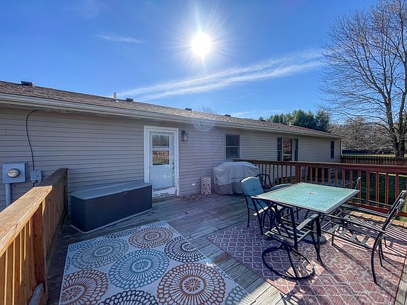 Welcome to your updated 3 bed, 2 bath ranch home! This home boasts a spacious living room flooded with natural light, perfect for relaxing. The modern kitchen features a large butcher block island top and stainless steel appliances. Additional upgrades include a new roof (2019) and HVAC (2021), ensuring worry-free living. Enjoy the convenience of a heated garage and the luxury of a large back deck, ideal for entertaining. The property also includes a storage shed with a loft for additional space. Don't miss the chance to make this house your home!