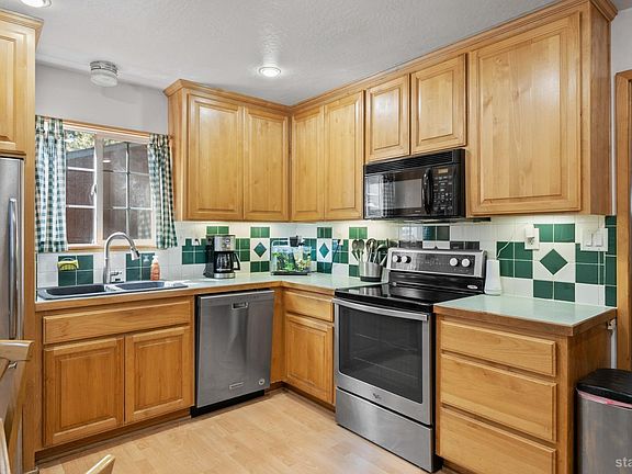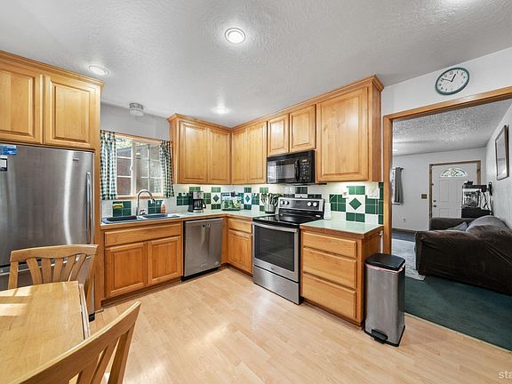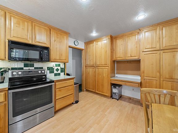 This pristine home is ready for the next homeowner who appreciates the quality of care given to the property, as it has been lovingly owned by the seller for 30 years. The kitchen has tastefully been upgraded with custom built alder cabinets, a built-in desk and stainless steel appliances. Alder cabinets can also be found in the separate laundry room where the on-demand water heater is located. Dog lovers will appreciate the completely enclosed dog kennel on the side of the property with a built-in dog door for direct access. The backyard is also fully fenced, and the 2 storage sheds provide plenty of extra storage, plus the front yard includes a two-can bear box to the side of the driveway. The fiber cement siding is a welcomed extra with the concern of fire safety, and the property is defensible space compliant. Walkability is a huge plus, with access to the Trout Creek meadow entrance around the corner. Restaurants, wine shop, pub, and retail shopping are a quick walk away, or you can jump on the bike trail that winds through the city. The property also has a BMP certificate from TRPA.