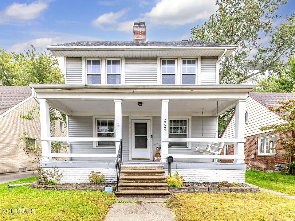 Full of charm and character, this 3-bed, 1.5-bath home welcomes you with a spacious front porch perfect for relaxing evenings. Inside, cove ceilings, gleaming hardwood floors, and a cozy fireplace create a warm, inviting atmosphere. The kitchen and dining area flow nicely for everyday living, while a convenient half bath is located on the main floor. Upstairs, a finished walk-up attic—accessible from the third bedroom—adds flexible living space, and the second bedroom opens to a unique air-deck for a breath of fresh air. The basement offers endless potential with some improvements already started, including a bar and a bright storage room beneath the front porch complete with epoxy flooring. A fenced backyard adds privacy and outdoor enjoyment. Timeless charm meets opportunity in this well-kept home ready for its next chapter.