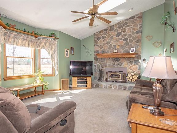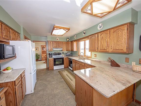 Beautiful, sprawling, 3 bedroom, 2.5 bath home sits on an acre of land in a quiet neighborhood. Ceramic floors, granite counters, wood burning fireplace, first floor laundry, wrap around porch, back deck, hot tub included. Attached and detached garages with space for 4 cars and lots of storage space. Hot water tank new in 2018.