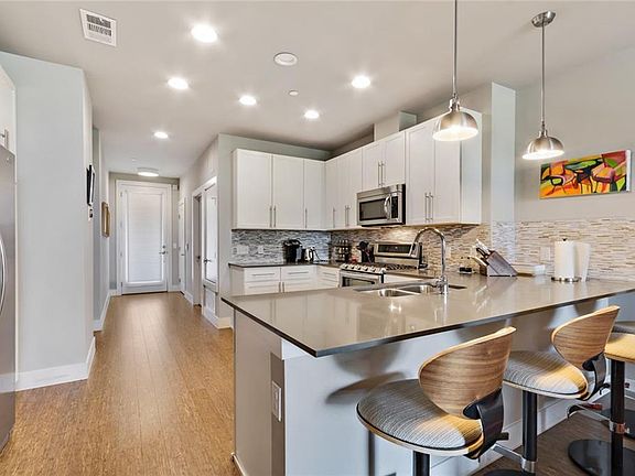 This beautiful 2 bedroom / 2 bathroom condo in desirable 78704 features an updated kitchen & bathrooms, hardwood flooring, laundry room, built in desk space, a patio with premiere downtown views & more! This property includes 2 parking spaces, one in a private garage & allows access to all of The Denizen amenities which include community clubhouse & pool, dog parks, grill areas, & walking/hiking trails. Less 10 minutes from Downtown, you can enjoy 78704 living at its finest. Minutes to Lady Bird Lake, Zilker Park, S. 1st & South Congress. Owner pays HOA Dues, tenant will pay all Utilities