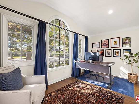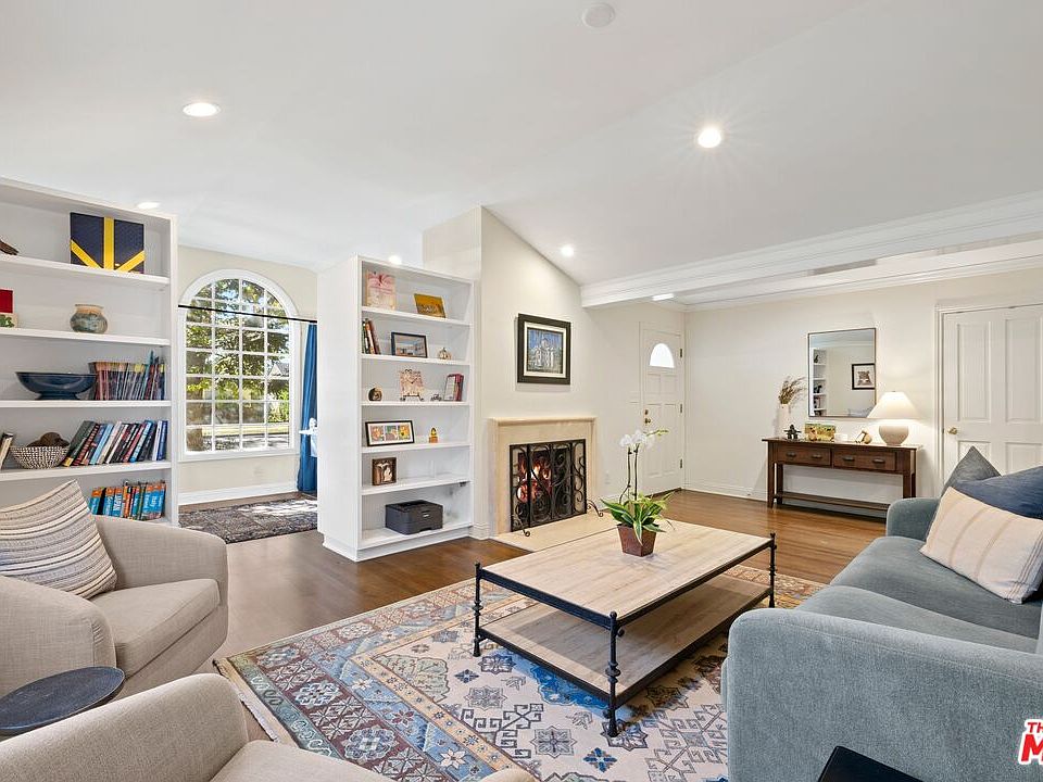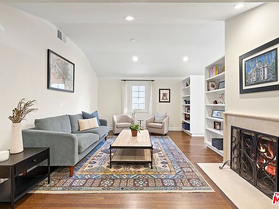 Welcome to Fall in New England, Los Angeles style. Tucked along a tree-lined street, this inviting and updated 3-bedroom, 2-bath home blends timeless character with modern comfort, capturing the cozy magic of fall on the Westside. A lovely garden path leads to the welcoming front door, setting the tone for a home that feels both classic and full of warmth. Inside, hardwood floors gleam beneath crisp white moldings and new window treatments frame sunlit windows, creating spaces that are as bright as they are sophisticated. The generous living room is ideal for music, reading, or quiet moments. Hidden behind bookcases is a spacious office, perfectly suited for creative exploration or a private remote work space. The heart of the home is the chef's kitchen, featuring an impressive 8-burner Viking stove, a wide breakfast island, generous storage, and plenty of room for gathering and cooking together. Just beyond, the dining area and family room - anchored by a wonderful fireplace - invite connection and comfort, perfect for cozy movie nights as the weather cools. The ensuite primary bedroom offers tranquil light, an updated/new bathroom, and new hardwood floors. The middle bedroom also enjoys new floors and abundant light, while the front bedroom is bright and airy with generous closet space. Step outside to your own private retreat: a gorgeous outdoor deck and serene garden shaded by mature trees, complete with a bubbling hot tub - perfect for relaxing under the stars and escaping from the bustle of the city. Perfectly situated near top schools, transportation, and the beloved shops and cafes of the Westside, this home offers a lifestyle that's both vibrant and peaceful - a place where every season feels special, but fall feels just right. Additional features include an EV charger in the garage and new backyard fence. Fireplaces are decorative.