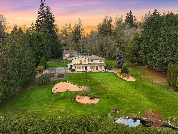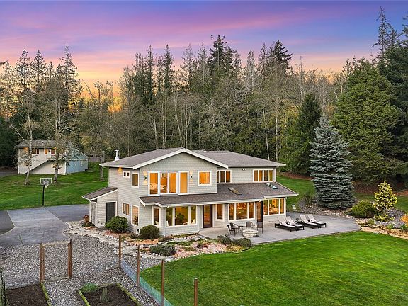 Lake Whatcom waterfront with dock and boat launch. This home offers privacy in a sought-after neighborhood, situated on 8.6 sunny acres with a picturesque pond, garden, and wooded trails. This has it all! The 3,700 sq ft custom home comes with a large heated outbuilding with shop and 1BR mother-in-law suite. Enjoy a desirable and hard-to-find open floorplan with hickory wood floors that have radiant heating, wood and gas stoves, AC, 3 BRs, 3 BAs, 2 home offices, a large bonus room, and new carpet. Take in the park-like, unobstructed lake view from your 1,400 sq ft patio with gas firepit and irrigated garden beds, fruit trees, and so much more. Ideally located close to Lake Whatcom Trailhead and the quaint Fork Restaurant. ONE OF A KIND!