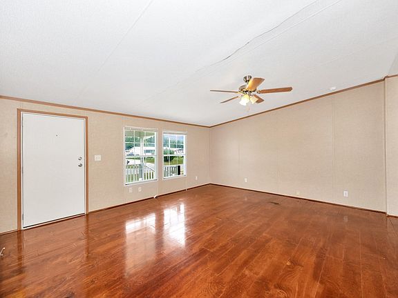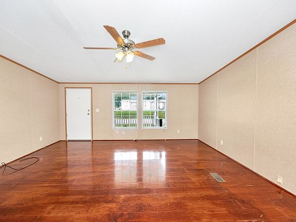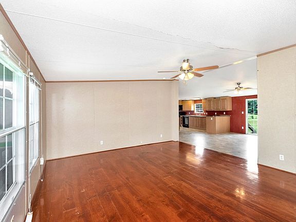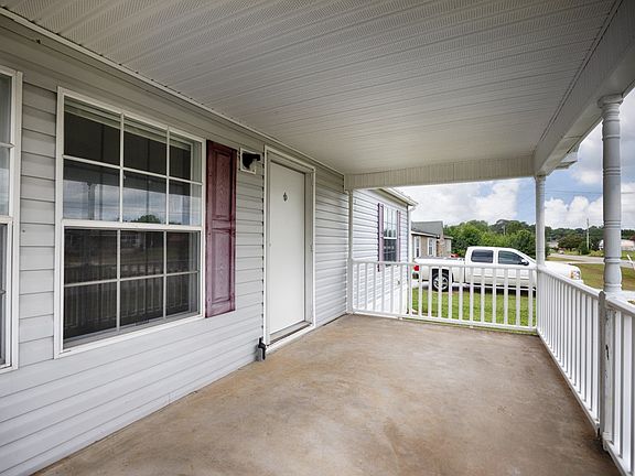 One-owner vinyl home on 1.2acres in East Limestone school districts is convenient to Athens, Madison, I-65, and Huntsville! Home has 3Br/2BA, 1800sf, and a covered front porch with railing. There is also a side and back door for additional home access. Three bedrooms all have carpet, crown molding and ceiling fans. Primary bedroom has a large full bathroom with double vanities and a separate soaking tub and shower. Living room has beautiful wood flooring and the eat-in kitchen is equipped with matching black appliances and vinyl flooring. The large yard is mostly open and level with a 5x8 outbuilding that would be great for storage lawn or grilling equipment.