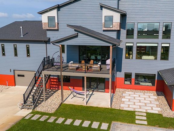 This Custom Built Luxury Home on 1.08 acres, is perched over Hole 5 at Bakker’s Crossing and offers over 6,800 Finished Sq Ft in which you can live your very best life! Imagine, on the very southern edge of Sioux Falls sits your near-new masterpiece where well-contemplated design, elegant finishes, and unmatched space come together in one extraordinary property. This home delivers with serene golf course views, soaring ceilings, and an ideal floor plan built for both everyday living and exceptional entertaining. Featuring 8 bedrooms (easily 9), 6 baths, and all of the oversized flexible living spaces you dream of, including a fully equipped multi-gen living unit or potential Airbnb, you could even turn it into a pool house - just add pool - think private kitchen, laundry, entrance, and living area. Showing off both of the designer kitchens, main floor spa-inspired owner’s retreat, office/den, powder room, laundry and drop zone, the main level checks all the boxes. The walkout lower level brings it's own bragging rights and features a massive rec room, 3 beds, 2 baths, 2nd laundry, +additional living unit. Not to be outdone, the upper level keeps the peace while bringing 2 worlds together – each upstairs wing is home to 2 spacious bedrooms and a full bath, they are joined via a custom catwalk leading to a central hangout space/theatre/playroom with tons of built in storage, and the third laundry area. An oversized, 4-stall finished garage with H&C water, and floor drain, is plumbed for heat, and EV ready. Additional 27x23 core space is ideal for a golf simulator, gym, or workshop. Prepped for solar and includes passive radon mitigation. This home was designed for those wanting the finer things in life, while making lasting memories, and looking for overall long-term efficiency.