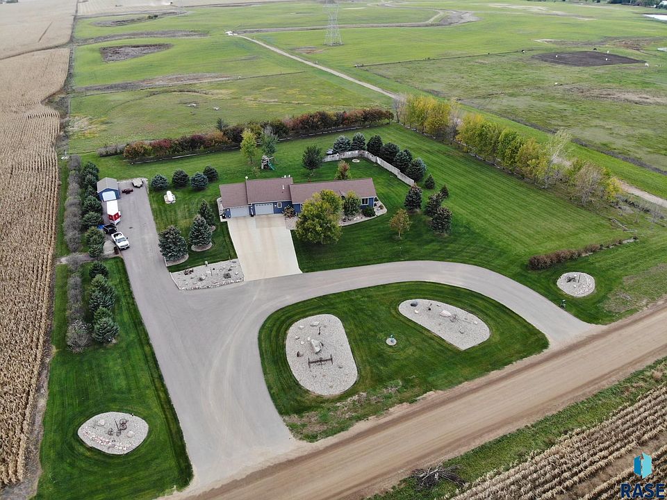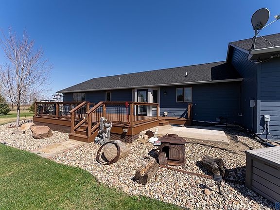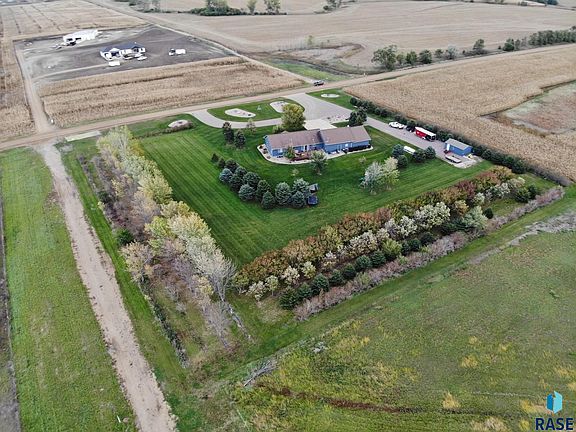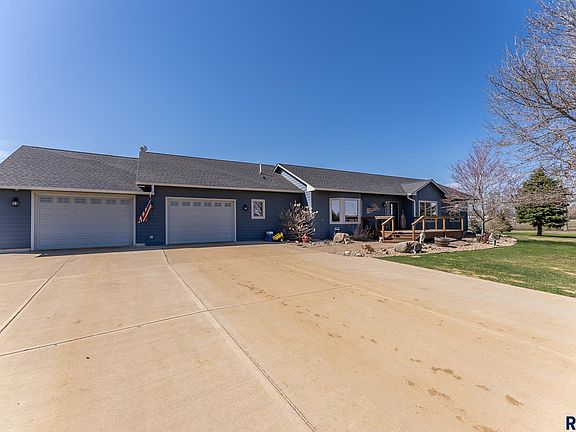 Looking for a stunning acreage in Harrisburg, SD that offers a perfect blend of privacy and convenience? THIS IS IT!!! Only a mile & half South of SF and nestled on 6.65 acres of land. This 5 bedroom, 4 bath ranch style offers a spacious and comfortable living space with over 2,000 sq ft on the main level. Three bedrooms on one level, open-concept kitchen and dining area, large mudroom off garage with laundry room, 3/4 bath and all the storage you could need for coats and shoes. Kitchen features ample cabinet space, perfect for storing all your kitchen essentials along with a walk-in pantry and storage closet. Huge primary suite with full bath and walk-in closet. Lower level was finished in 2017 and is CUTE. Offering two more bedrooms, full bath and a great family room perfect for spending cozy evenings with family and friends. Step outside to the back deck and take in the serene surroundings including a tree belt for added privacy and windbreak. Oversized garage & storage shed.