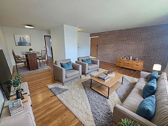 Welcome to 2725 Central Street, located two miles from downtown Evanston, IL. This mid century modern one bedroom, one bathroom apartment is perfect for those seeking a comfortable living space. Step into a bright, open-concept living room, featuring exposed brick, that seamlessly flows into the dining room or a home office. The kitchen features ample counter space, and generous storage ideal for entertaining guests or enjoying quiet nights in.