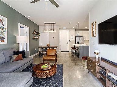 Tall ceilings, Natural light, Covered patio, private yard, Unique split 2bed, 2bath floorplan w/laundry room make this condo unique! Gorgeous finishes: stainless steel appliances, tankless water heater, designer tile, coveted white kitchen. Owner upgrades w/Moen farmhouse sink, West Elm light fixture, custom Closets by Design, yard upgrades w/ St. Augustine grass/rock feature. Unit has 1 private garage & 1 reserved parking spot. Resort like pool, clubhouse, grills, community garden, 2 dog parks & more on the property. Samsung smart washer and dryer also included. Owner has also updated guest bathroom with new vanity and mirror (not shown in photos).