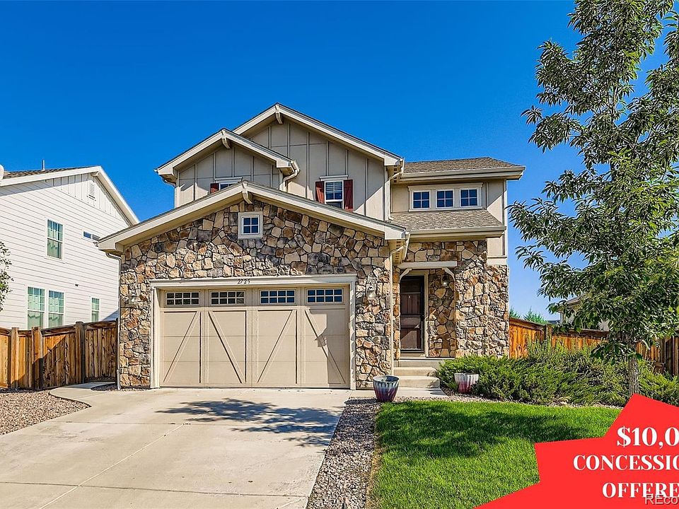 This inviting two-story home offers style, space, and an opportunity to make it truly your own. The stone-accented exterior and two-car garage provide great curb appeal, while the bright, open living area features abundant windows and natural light. The kitchen/living room has an open concept with island counter seating and plenty of living space. The upstairs include an en suite primary bedroom, laundry room, a full bath and 2 generously-sized bedrooms. Downstairs, there is a unfinished full-sized basement that can be turned into another bedroom or living area. Outside, enjoy a fenced backyard with a patio, beautifully redone grass, and room to relax or entertain. Conveniently located near a neighborhood park, schools, Costco, and Topgolf. While the home has been cared for, a few cosmetic updates and new carpet will make it shine. This home is ready for its next chapter!