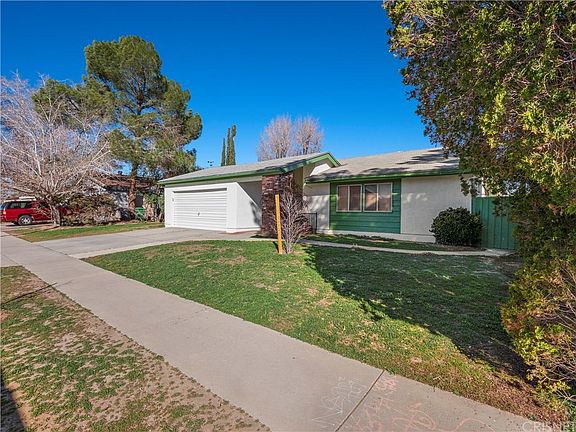 3 bedrooms 2 baths single story Palmdale home. The home features a living room with a gas fire place, pantry in the kitchen, newer paint, nice size backyard with a covered patio.