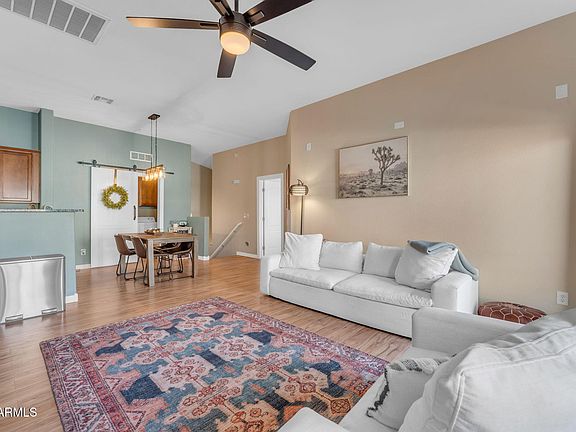 Move-in-ready, 2BD/2BA townhome in a gated community! The split bedrooms are great for privacy and the floorplan feels open and airy. Recently updated flooring throughout home. Kitchen features maple cabinets, granite counters and stainless steel appliances. Don't forget about the balcony to enjoy the sunsets on! 1-car garage with an epoxy-coated floor and overhead storage. Enjoy community amenities including a pool, jacuzzi, playground, and lush green spaces—all within a secure, gated environment. Conveniently located near the 101 and 51 highways for easy commuting. Don't forget the many nearby hiking trails and some of the best dining and shopping in Desert Ridge! See it today!