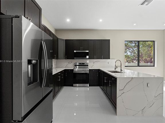 This beautiful new construction home located in the Lakeside Estates subdivision of Oakland Park! The home offers soaring 10-foot ceilings and elegant 24x48 porcelain tile flooring throughout. The home features include: modern style kitchen with quartz stone countertop, large master suite with two walk-in closets, Samsung stainless steel appliances, large washer & dryer, 8ft tall french front door and rear sliding glass doors. A very durable privacy PVC fence enclosing the spacious backyard- with enough space to build a pool. There is no HOA. A must-see for buyers seeking quality craftsmanship and contemporary design!